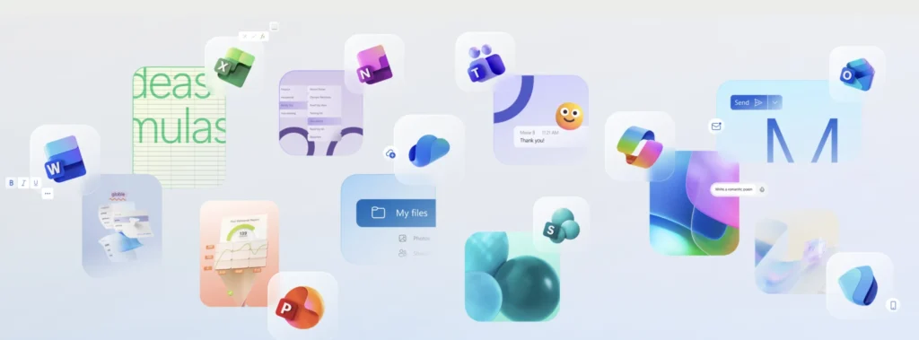 Microsoft has chosen richer and more contrasting color gradients to improve visual accessibility and enhance the playful aspect. The shapes are simplified; for instance, the Word icon has been reduced from four horizontal bars to three, making it clearer even at smaller sizes.