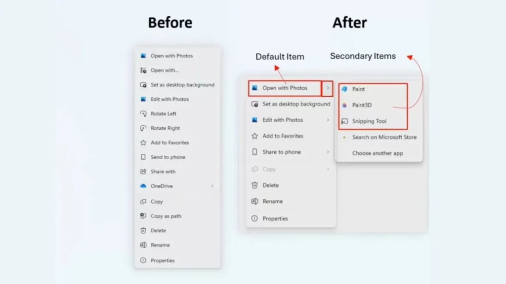 The principle: Instead of displaying a long list of actions with each right-click, the system will analyze the selected content (file, folder, image, text, etc.) and only suggest relevant options. Some of these options will then open a secondary submenu, allowing access to more specific functions without cluttering the main list.