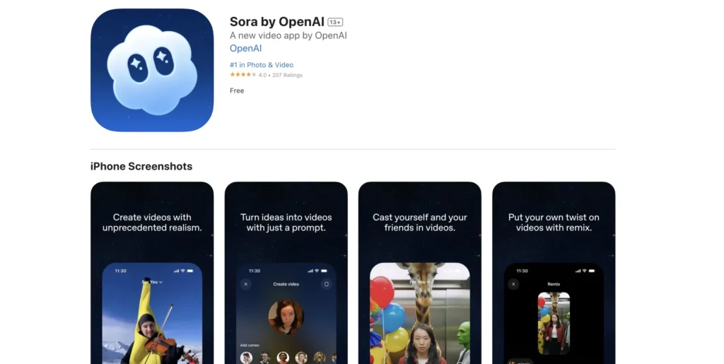 According to data from Appfigures, as reported by TechCrunch, the app had 56,000 downloads on its first day, reaching 164,000 installations within two days (September 30 and October 1). As a result, Sora has already secured 3rd place in the overall ranking of the US App Store.
